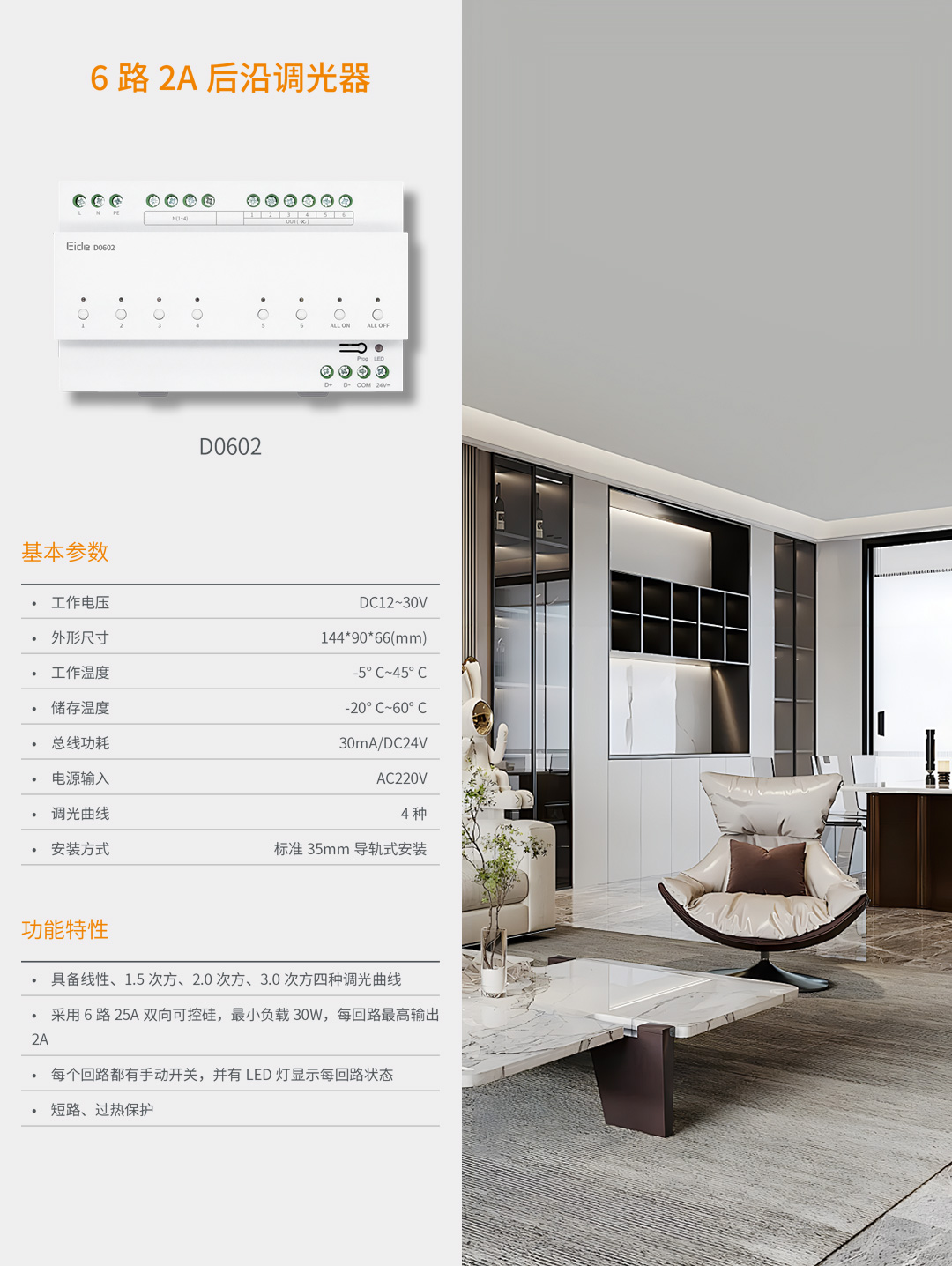 2、采用 6 路 25A 双向可控硅,最小负载 30W,每回路最高输出2A;